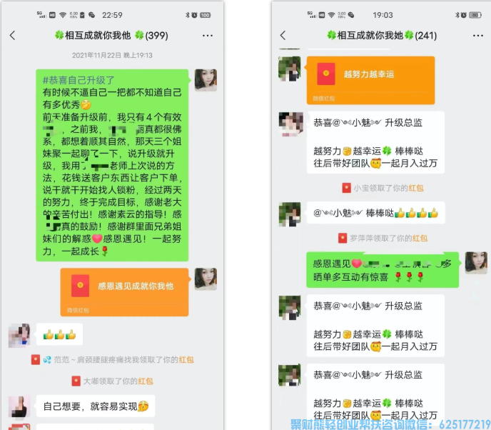 2、增加跟客户的粘性,发点小红包,不要做只会发品的机器人(现在这些购物群很多很多,客户到哪里买不是买?人家肯定爱在有活力有温度的群里待着,而不是只会发品冷冷冰冰的群里),这些也都是我们的老大教的,老大还经常给我们讲干货,怎么打造朋友圈等等,在她的团队真的学到很多,成长了很多。