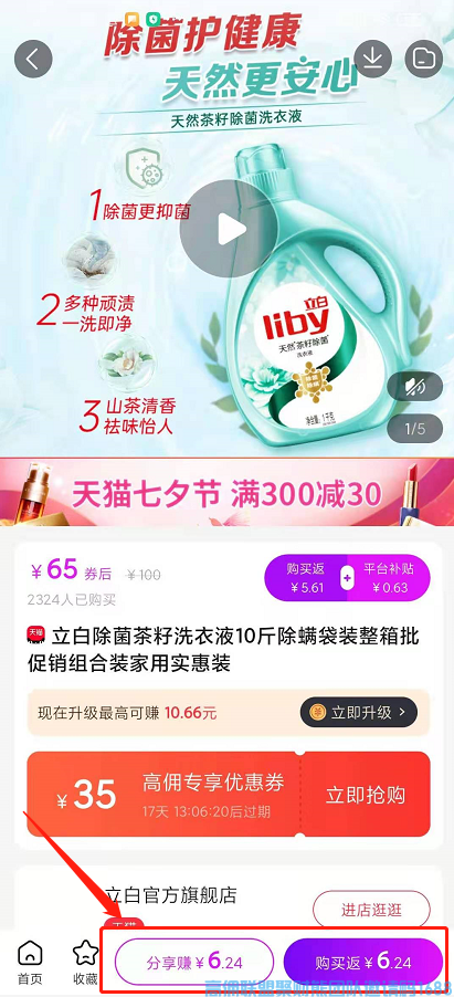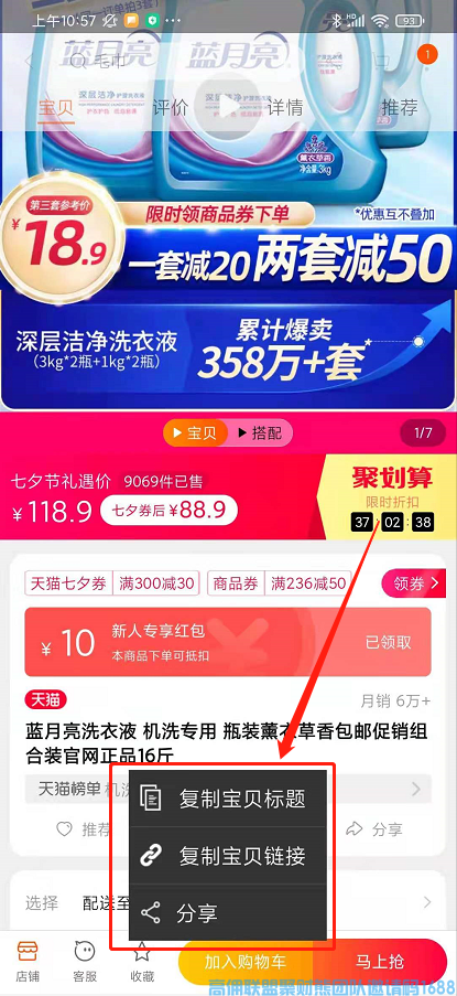 第一步:在淘宝看到想要的商品,复制商品名称链接,然后打开高佣联盟APP